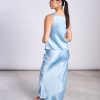 All dressed up…without any effort. May we introduce our maxi skirt SERIN! SERIN is ankle-length and slightly flared. SERIN is your faithful companion for summer weddings, dances at the beach or whatever you’re up to in summer.The fabric is a mix of 95% ENKA Viscose und 5% Circulose, what makes the skirt very silky looking und softly flowy falling. Just like silk, but vegan.Hint: SERIN can be worn on your hips and on your waist, if you want to wear it on your waist then take one size smaller!Matching with TOP TALARA RETRO BLUE